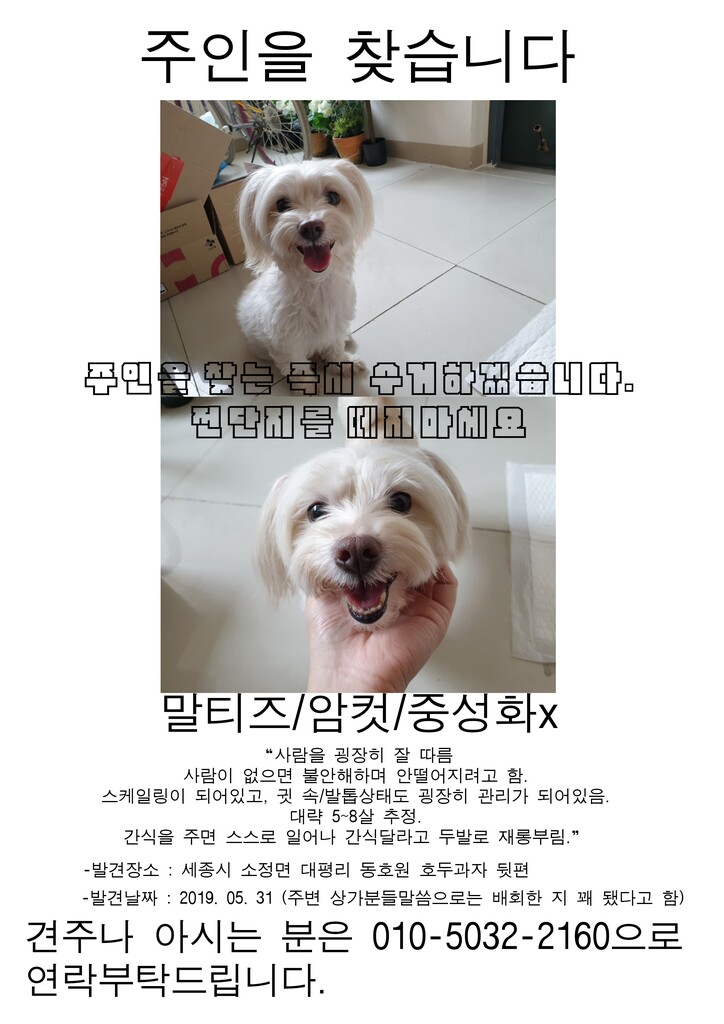 °ü¸®°¡ ³Ê¹«³ªµµ ÀߵǾîÀÖ¾î ÁÖÀÎÀÌ À־À̴µ¥.. ÇöÀç õ¾È µ¿¹°º¸È£¼¾ÅÍ¿¡¼± ¹ß°ßÀå¼Ò°¡ ¼¼Á¾À̶ó´Â ÀÌÀ¯·Î ¾ÈµÇ°í ¼¼Á¾¶ÇÇÑ 10Àϵ¿¾È¸¸ ÀÎÅÍ³Ý °ø°í ÈÄ ÁÖÀÎÀÌ ¾øÀ» ½Ã "¾È¶ô»ç´ë±â"°¡ µÈ´Ù°í ÇÕ´Ï´Ù.
