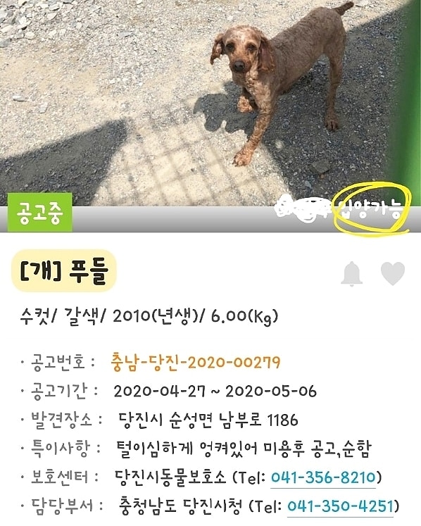 ÇöÀç ´çÁø½Ãµ¿¹°º¸È£¼Ò(041.356.8210)¿¡ ÀÖ½À´Ï´Ù.4¿ù27ÀÏ ¿ÀÀü¿¡ ¹ß°ß½Ã ¸ñÁÙÀ̳ª °¡½¿ÁÙ ¾ø´Â »óÅ¿´°í ¶ÇÇÑ Ä¨µµ ¾ø¾ú½À´Ï´Ù.