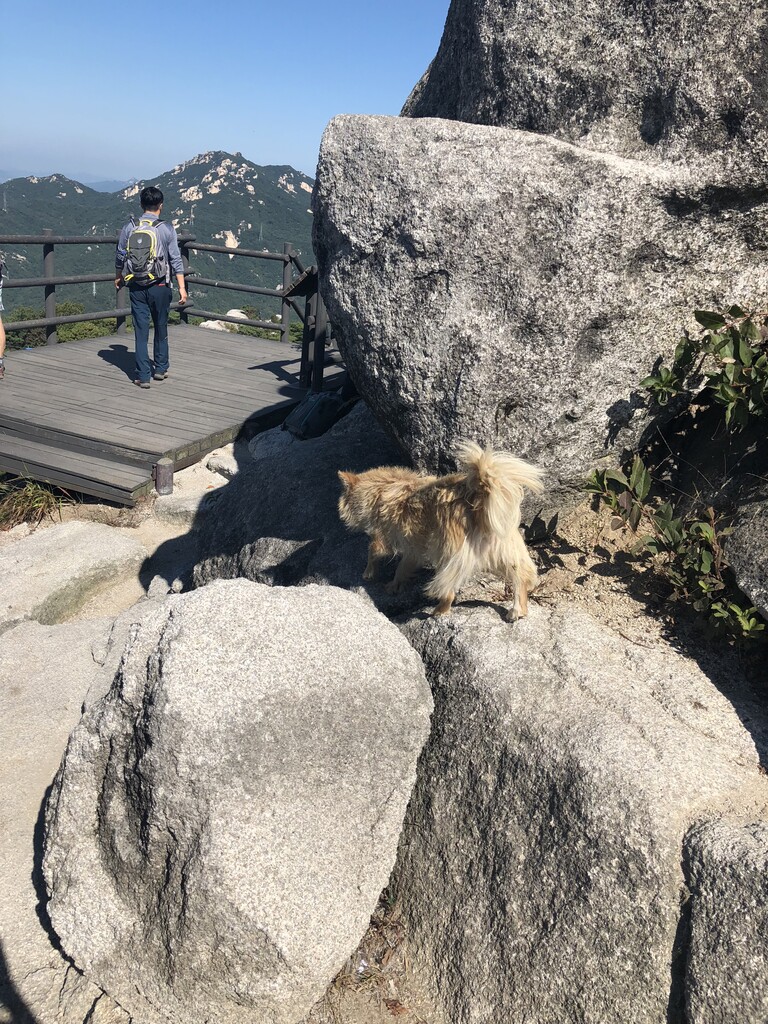 Åä¿äÀϾÆÄ§ »êÁ¤»ó ¹ÙÀ§¿¡ °­¾ÆÁö°¡ µ¹¾Æ´Ù´Ï´Âµ¥