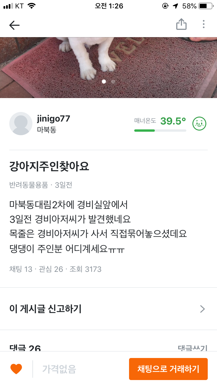 ¿ëÀνà ¸¶ºÏµ¿ ´ë¸²2Â÷ °æºñ½Ç¾Õ¿¡¼­ Áö³­ÁÖ 12ÀÏ Á¤µµ(Á¦°¡ ¹ß°ßÇÑ°Ô ¾Æ´Ï¶ó Á¤È®ÇÏÁö ¾Ê¾Æ¿ä.ÀÏÁÖÀÏÀÌ ´Ù µÇ¾î°¡´ÂµíÇÕ´Ï´Ù.)¿¡ ¹ß°ßµÇ¾î¼­ °æºñ¾ÆÀú¾¾°¡ ¸ñÁÙ»çÀÚ Ã¤¿ö º¸È£ÁßÀ̽ʴϴÙ