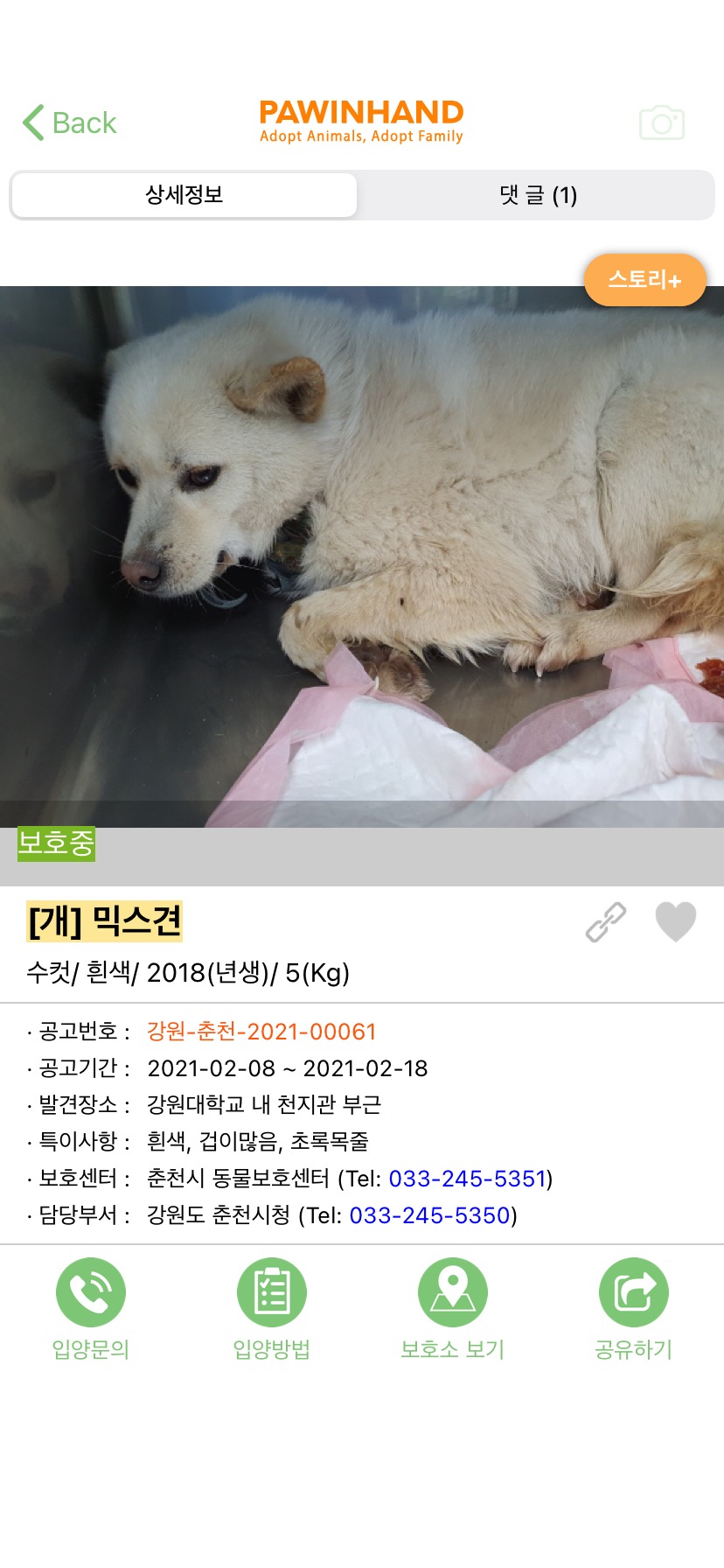º¸È£¼¾ÅÍ: Ãáõ½Ã µ¿¹°º¸È£¼¾ÅÍ(tel 033-245-5351)