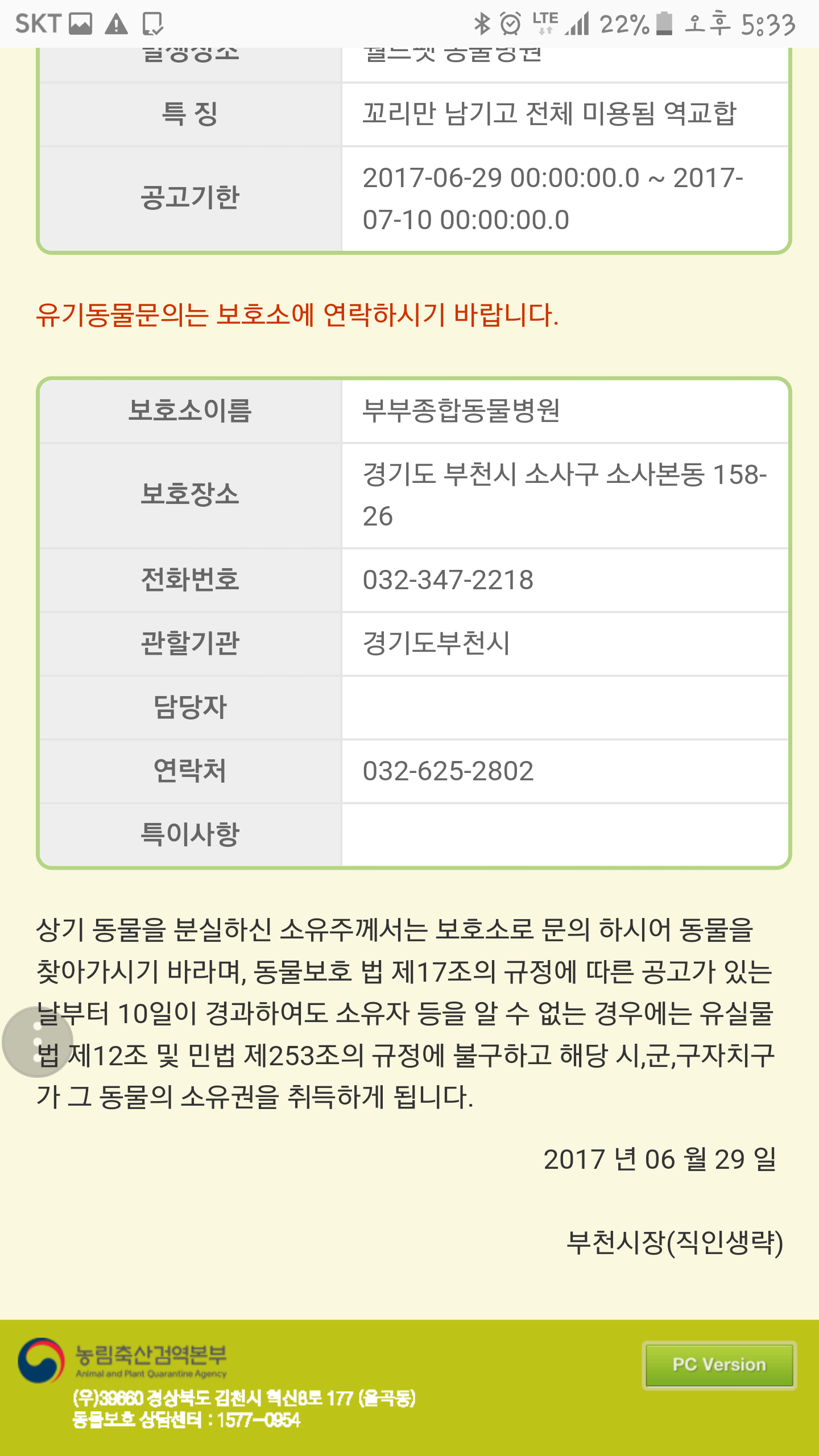 ºÎõ ºÎºÎÁ¾ÇÕµ¿¹°º´¿ø¿¡¼­ 10ÀÏ º¸È£ ÇÑ´Ù°í ÇÕ´Ï´Ù