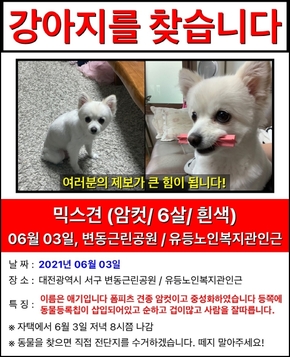 ³»¼­Çϳª·Î¸¶Æ®(³ó»ê¹°½ÃÀå) ÁÖÂ÷Àå¿¡¼­¸»Æ¼Áî Èò»ö °­¾ÆÁö¸¦ ÀÒ¾î¹ö·Á ã°í ÀÖ½À´Ï´Ù º¸È£ÇÏ°í °è½ÅºÐÀ̳ª ãÀ¸½Å ºÐÀº ÀÌ ¹ø È£¿¡ ¿¬¶ô ºÎʵ右...